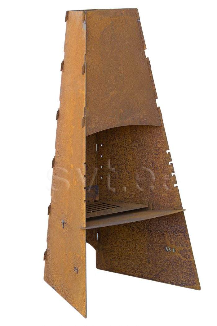 Välikamin on valmistatud terasplaadist, mis ilmastiku mõjul oksüdeerub. Protsessi kiirendamiseks võib kamina pindu karestada liivapaberiga ja töödelda soolalahusega.