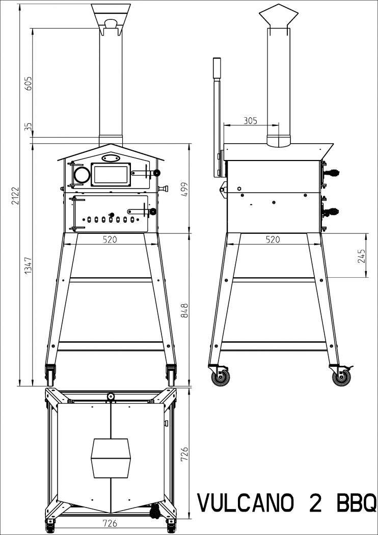kõrgus 1347mm (korstnaga 2122mm)