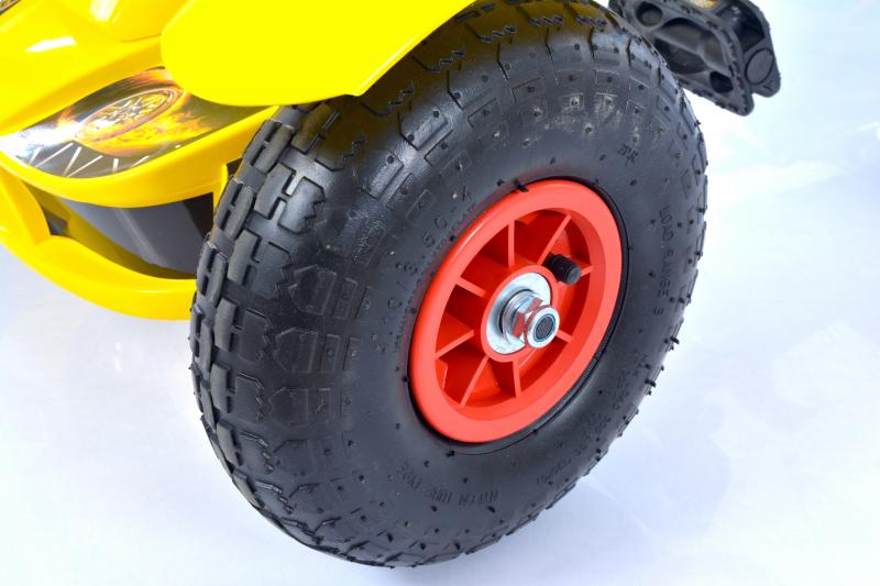 Velokardil on klassikalised kummist täispuhutavad kamberrattad. Lapsed saavad mugavalt sõita nii mullal kui ka asfaldil. Need annavad vastupidavuses järele EVA’st rehvidele – nagu standardsel jalgrattalgi, on võimalik läbitorkamiste tekkimine või rõhu kaotus rehvides.