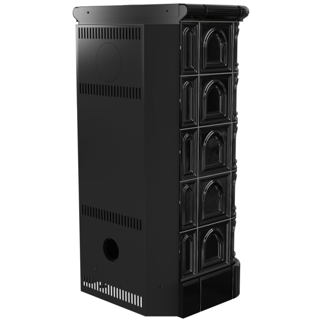 Retro stiilis disain – poleeritud plaadid. Plaatidest valmistatud kest suurendab soojusülekande aega, mis on täiendav soojusallikas pärast tule kustumist ahjus.