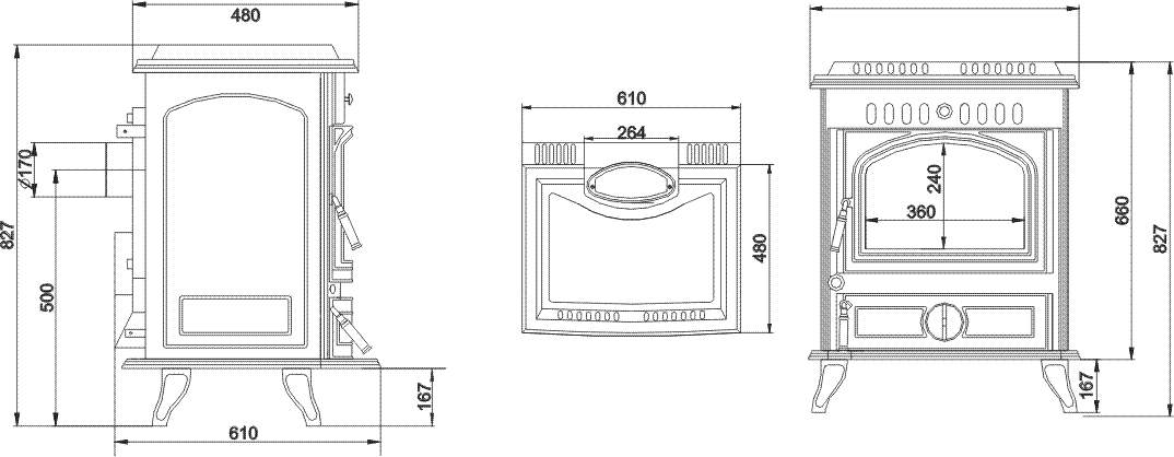 Turvakaugused põlevate materjalideni: ette 1200mm; külgedele 600mm ja taha 800mm