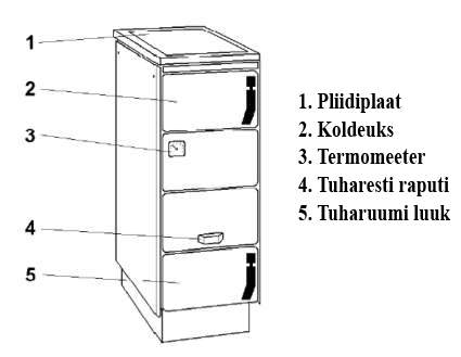 Katla põhiosad on korpus, kaskass, malmivalust detailid (tuharestid, restialused ja raam), isolatsioon, pliidiplaat ja kaitsedetailid.