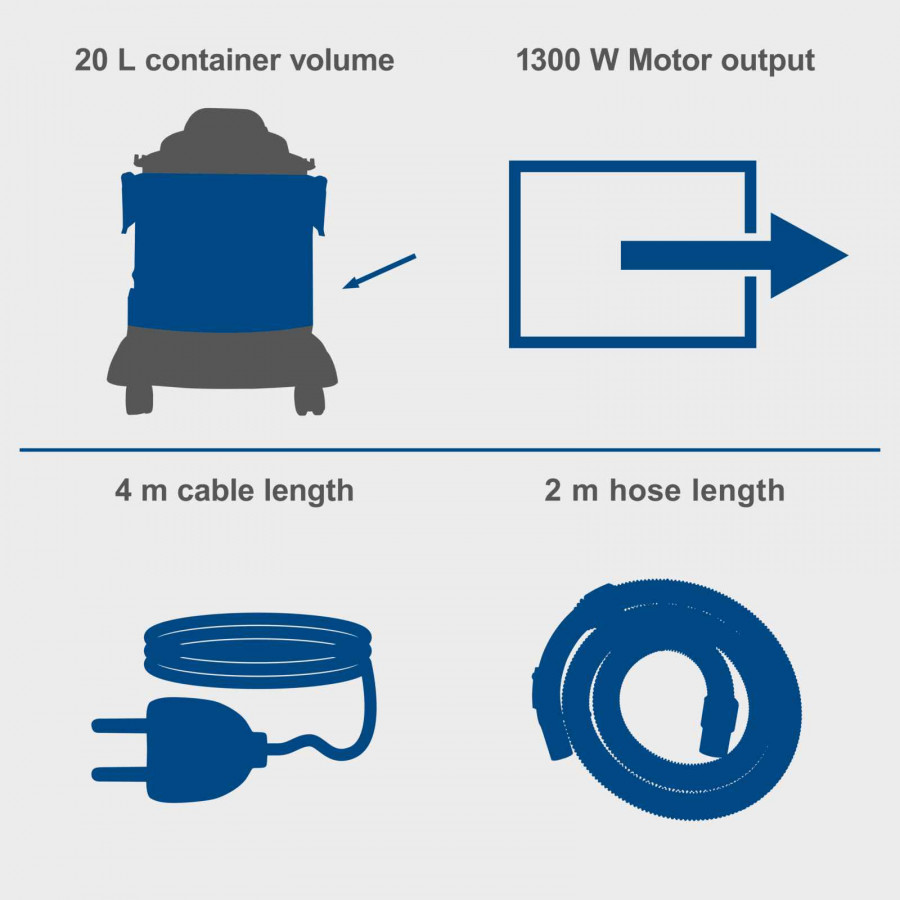 Vee- ja tolmuimeja VC20, puhumisfunktsiooniga, Scheppach