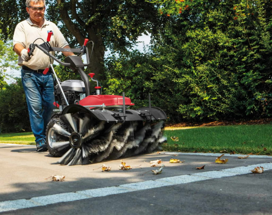 Scheppach SC2200PE bensiinimootoriga pühkimismasin, kogumiskasti ja lumesahaga teeb töötamise suurtel aladel lihtsaks ning mugavaks