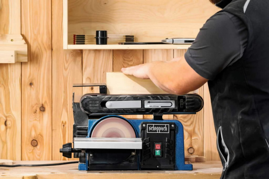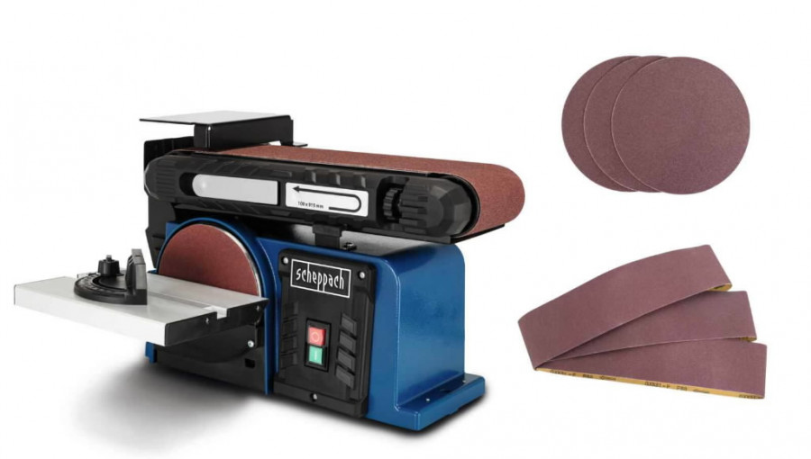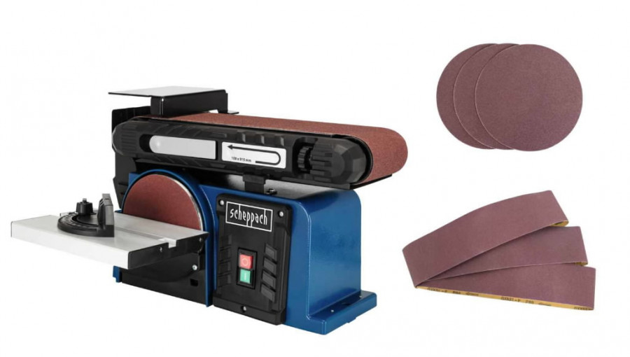 Lint- ja ketaslihvmasin BTS900 + lihvkettad, -paberid, Scheppach