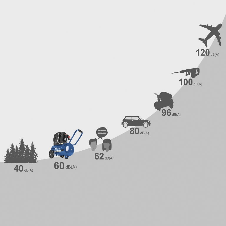 Väga vaikne, kuid piisavalt võimas kompressor, mis sobib kodusesse majapidamisse või mujale, kus müratase on oluline näitaja. 60dB on võrreldav 2 inimese vahelise jutuga