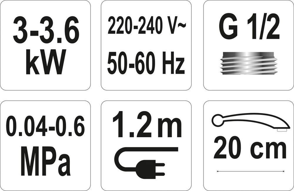 - Kütteelement kuumutab vee kuni 60 kraadini 5 sekundiga.