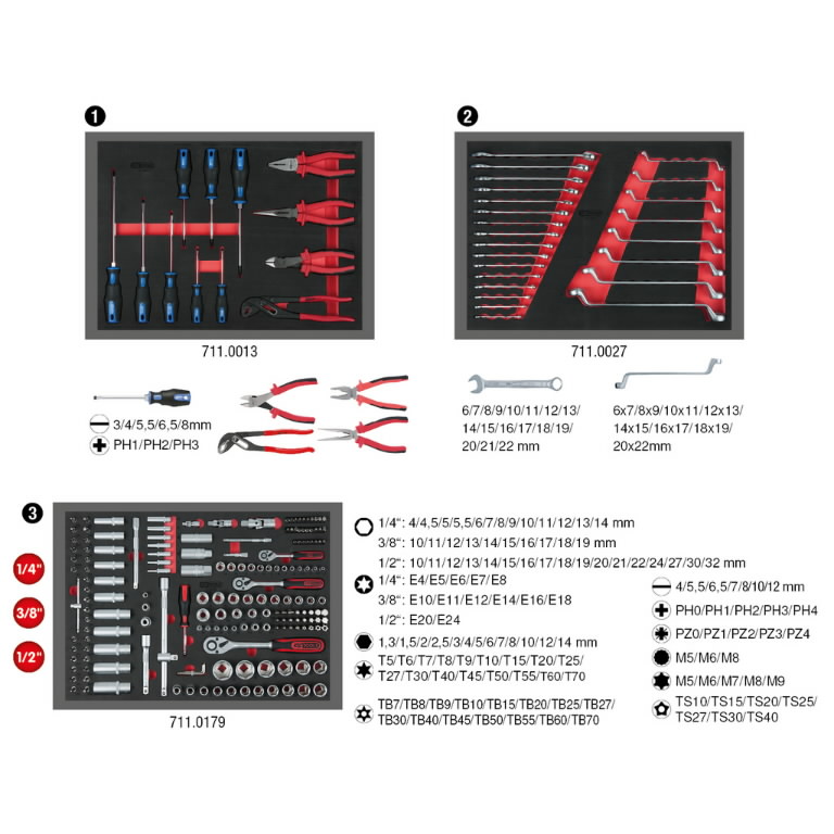 Kaasas 215-osaline tööriistakompleks kolmes vahtmoodulis