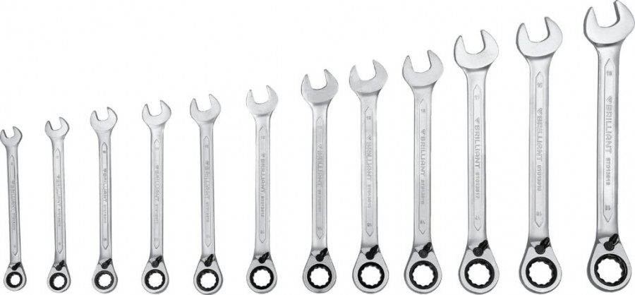 BRILLIANT TOOLS 12-osaline silmusnarrede komplekt BT013212 on toodetud vastavalt standardile DIN 3113. Meetermõõdustikus narrefunktsiooniga silmusvõtmel on 72 hambaga peenhammastus ja 5° tagumine pöördenurk. Võtmel on pööratav narrepea, mis on 15° nurga all. Kergelt süvistatud lülitushoob hoiab ära juhusliku ümberlülituse ja kaitseb nii teie sõrmi ja liigeseid. Mokkade asend on samuti 15° kaldega. Narrefunktsiooni pöörlemissuuna muutmine (parem/vasak) toimub mugavalt ümberlülitiga. Pealispind on mattkroomitud, seega püsib see ka väga hästi käes. Silmusnarrede komplekt suurustes 8 mm kuni 19 mm tarnitakse praktilises riputusaasadega varustatud hoiukotis.