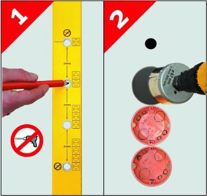 Lood elektrikutele, millega on lihtne mõõta ja märkida seinale pistikupesade asukohti. Loodi keres olevatesse aukudesse mahub täpselt märkima lapiku ehituspliiatsiga. Libisemisvastased otsakorgid hoiavad tööriista seina vastas mõõtmise ajal kindlalt paigal.