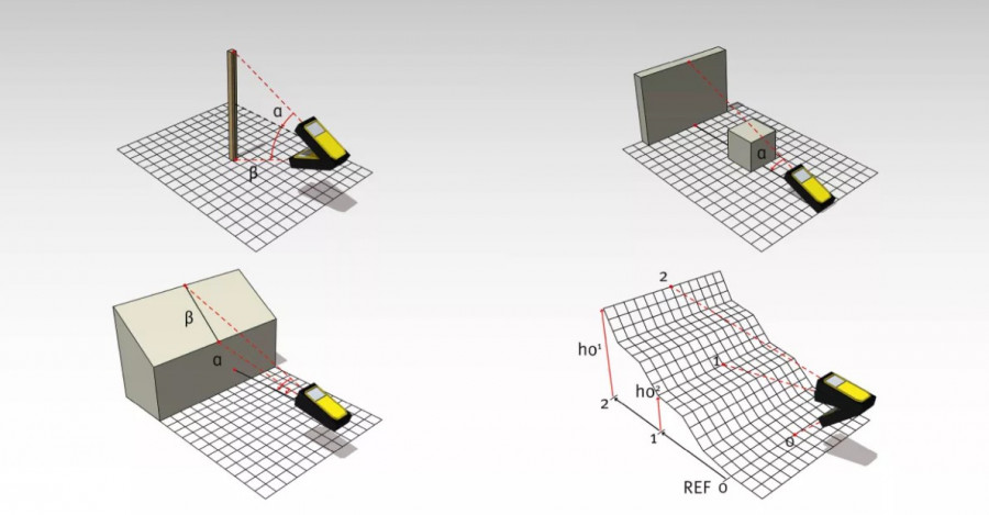 Põhjalik pakett 17 mõõtefunktsiooniga, sh pindala, maht, kalle, kaudne kõrguse ja kauguse mõõtmine.