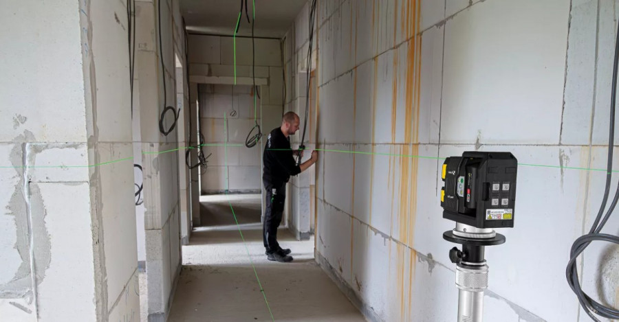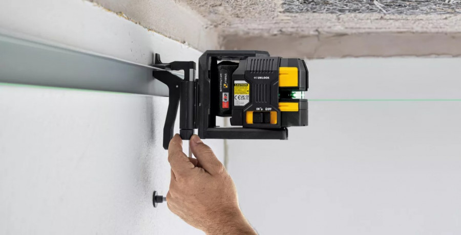 CAS 12 V akutoitel, isenivelleeruv ristjoonlaser loodijoone punktidega horisontaalsel ja vertikaalsel tasapinnal töötamiseks.