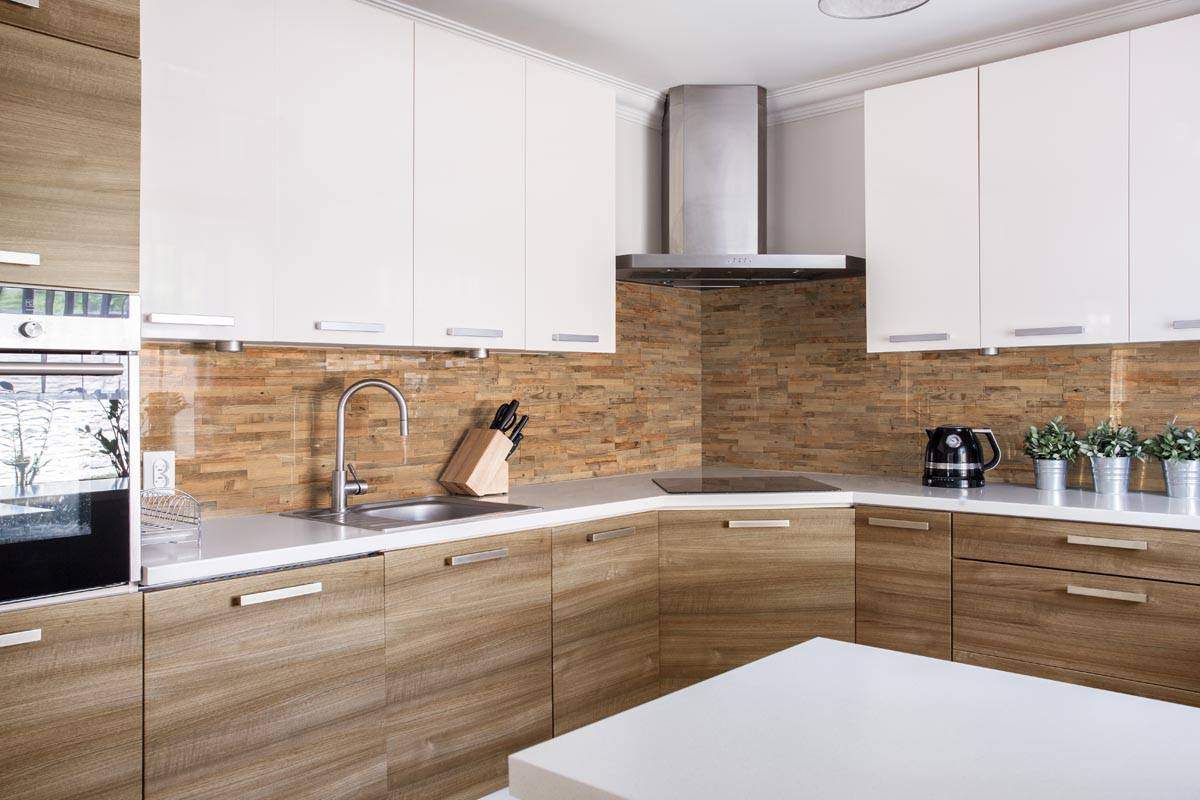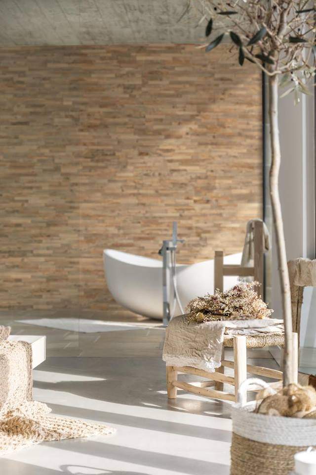 Need paneelid on väga soojades toonides. Siin on kasutatud taastatud harjatud puitu.